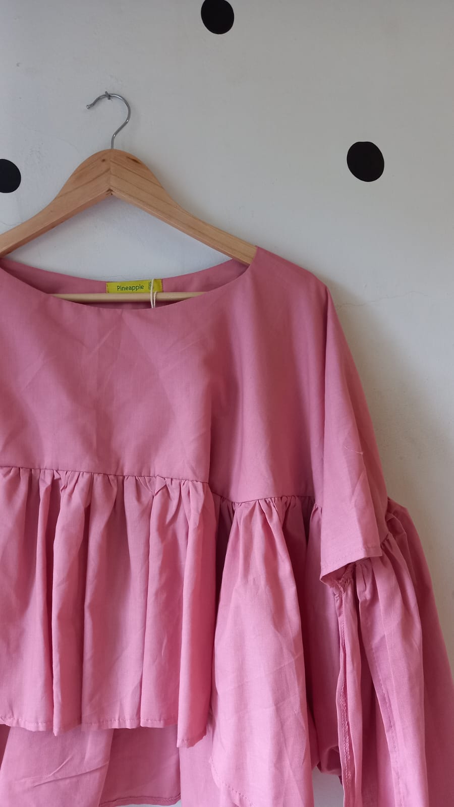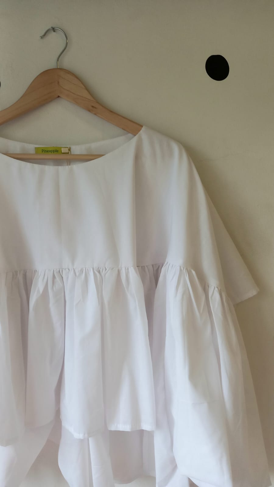 The Coco Top is giving OKAY?! With its exaggerated over the top ruched (pleated) puffed sleeves, is designed for a loose fit (oversized). It"s Asymmetric high and low hem. Now the Coco top is ready for anything, slow mornings, slow Sundays, afternoon downers and spontaneous picnics in the park.